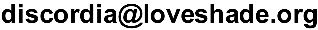 | We had a really nifty fill-in-the blank form thingy here--and it got used and used and used by spammers. So until we get one of those "prove you're a person" things, if you want to send up feedback please email us. Our address is discordia at loveshade dot org. (You know, get rid of the spaces and substitute @ for at and . for dot. |